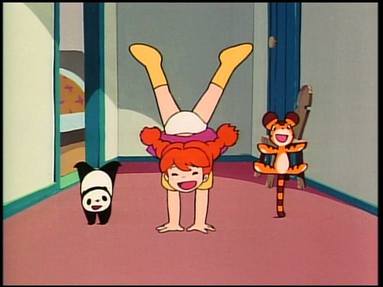 There are more hints at later Ghibli works to be found in these films. Papa panda is a clear fore-runner to Totoro from My Neighbour Totoro (1988); from his hugs and his bellows to his self-assured everything-will-be-okay attitude. Mimiko meanwhile is reminiscent of Mei from the same film (although her red ponytails are clearly inspired by Pippi Longstocking), and elements like the flooded town and train can be likened to those found in Ponyo on the Cliff by the Sea (2008), while the washing line scenes are like a similar scene from Howl's Moving Castle (2004). Daily chores are always honest, wholesome activities in Studio Ghibli films.